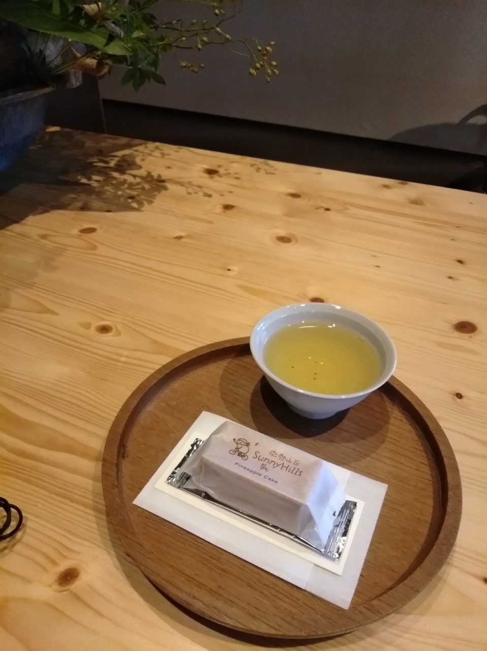 たまたま変わった建物だなーと通り過ぎようとして、看板に見覚えがあったので入ってみました。台湾の美味しいパイナップルケーキのお店が日本でも出店しているのですね。仕組みがわからず戸惑いましたが、二階でお茶とケーキを試食させていただけます。そのまま帰っても良さそうですが、さすがに気が引けるので気持ちで5つ入りを購入。一つ300円!これが台湾だと半額近くと知り、これを食べに台湾に行きたくなりました笑