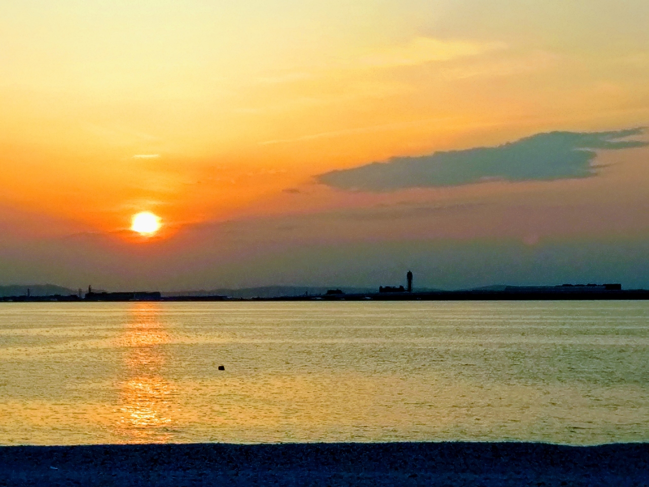 関西空港から離陸する飛行機と関空連絡橋が遠くに見える石が敷き詰められた人口ビーチです。りんくうタウンから徒歩で散策できます。プレミアムアウトレットからも直ぐなので、そこのついでなら行っても良いのかも知れません。