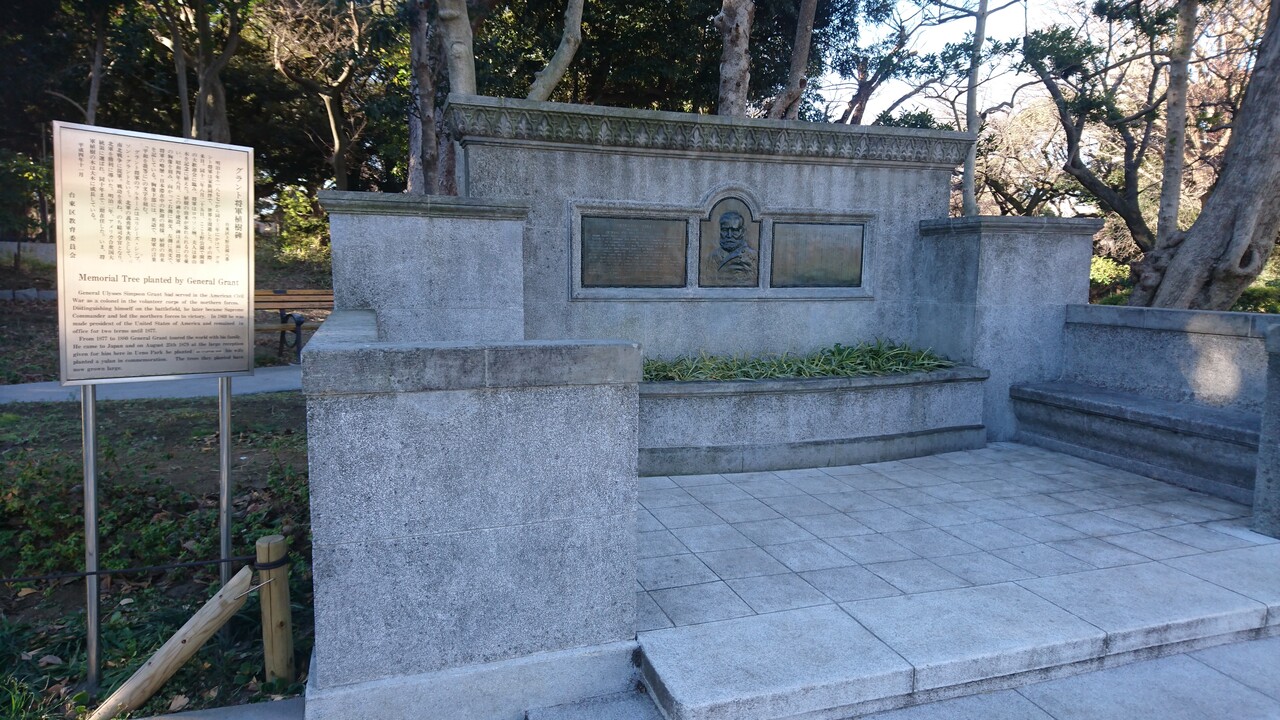 かつてアメリカ合衆国大統領だったグラント将軍が日本を旅行で訪れた際に植樹した樹が上野公園にありました。上野動物園の入口に近い当たりで、大きくて立派な記念碑が建っていました。樹木も大きく茂っているのですが、碑の方が存在感が大きなものでした。