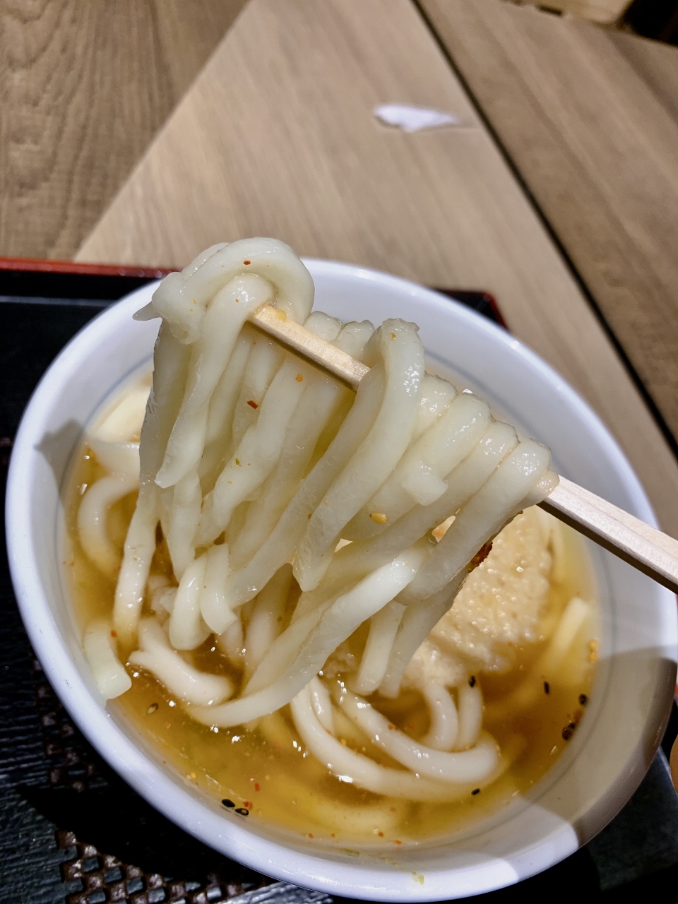 麺は期待を裏切らない柔い麺!もっちりとした感じも楽しめます。単にのびた麺では無いです。最後のスープ一滴まで飲み干せる美味しいうどんで朝ごはんにはもってこいの「うどん」でした。