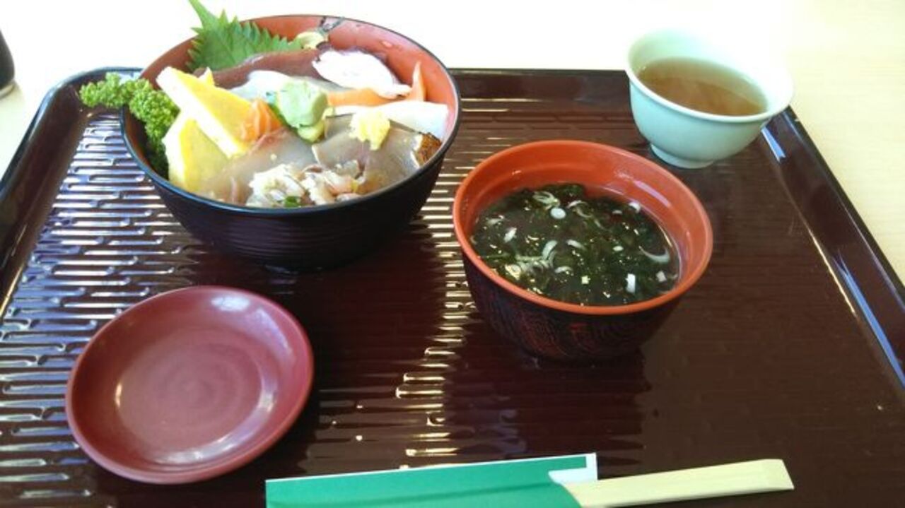食堂は6時から、お寿司屋は7時からオープン、双方14時までです。