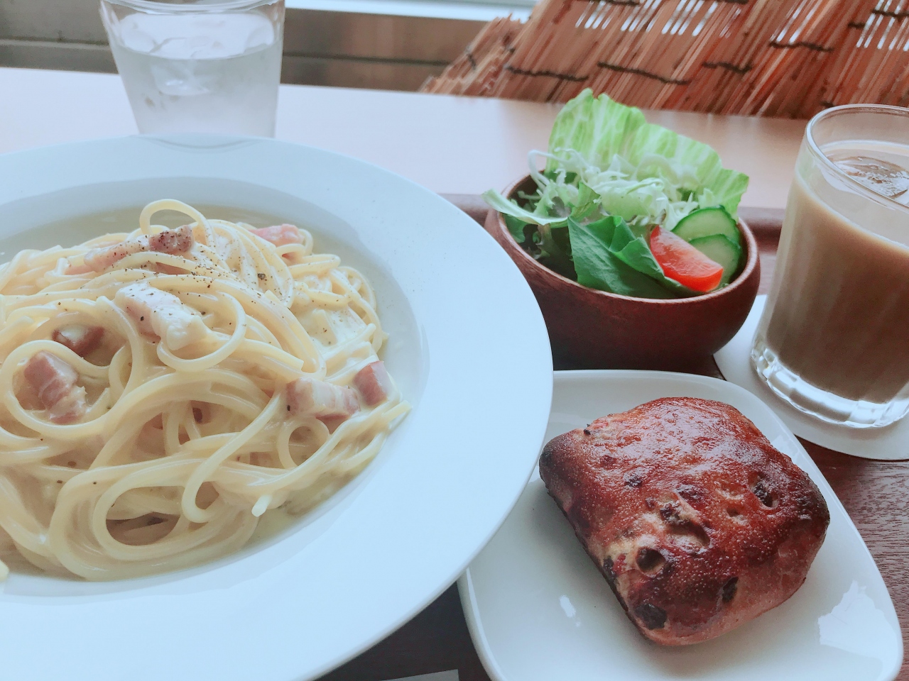 たまたまこのあたりでランチをとることになったけど、食べたいものも店もない。調べてこちらの県庁の食堂へ。たった500円でカルボナーラを食べれました。しかもそこそこおいしいです。パンもサラダもついてお得感ありました。