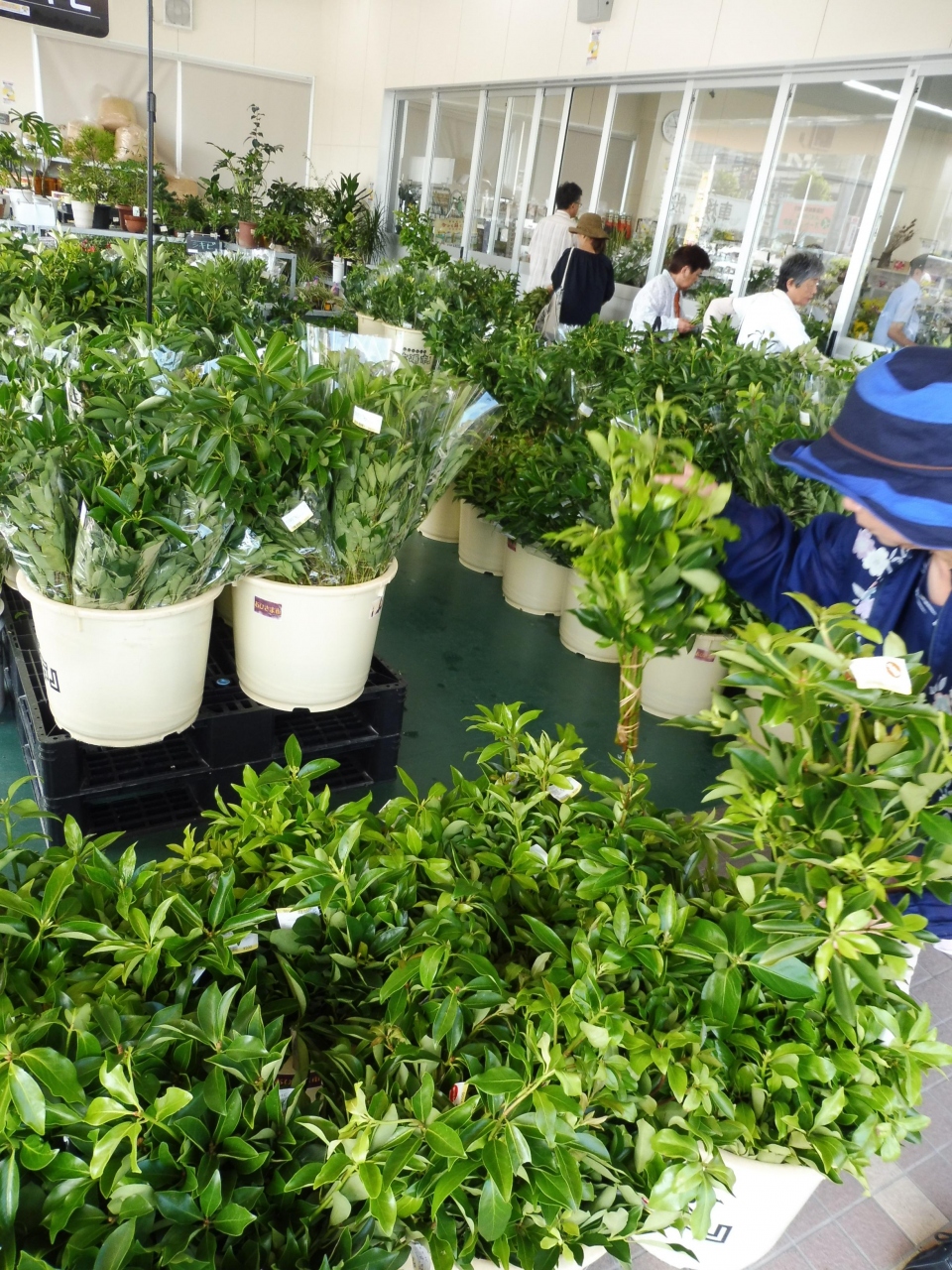 次期柄屋外の植物売り場に大量に用意されていました。松山ではお花じゃなくこの青々とした植物のシキビをお墓にお供えしますね~