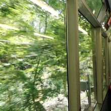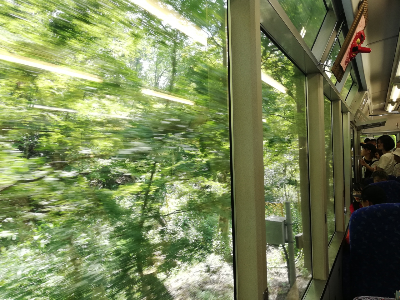 電車ももみじを展望できるように、座席が窓側に向いている「きらら」も走っていて、また「もみじのトンネル」に近づくと、社内でアナウンスがあり、運転も徐行してくれるという優しい対応ですね。