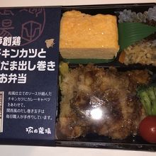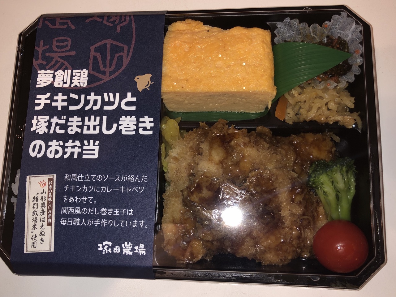 サウスの塚田農場でお弁当を購入しました。「夢創鶏チキンカツと塚だまだし巻き」というやならと長い名前でしたが、要はチキンカツとだし巻きたまごがメインのお弁当です。ちなみにお弁当は他にも販売しています。その他、施設内に銘菓やスイーツ、食料品のお店が多々あるので、選択肢が豊富です。