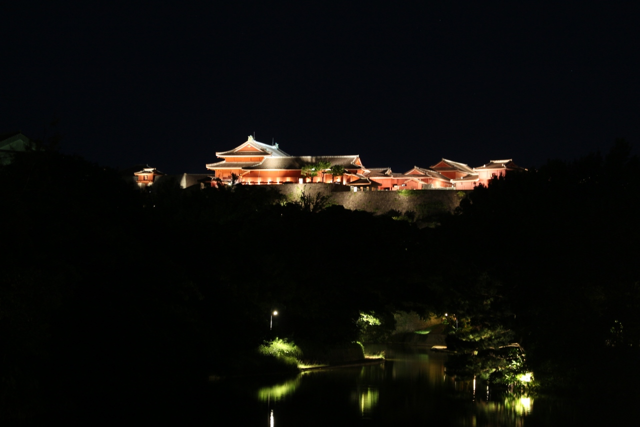 首里城駅から歩いて向かいましたが、途中から道路にも街灯がなく、真っ暗の中歩きました。ライトアップを見に来る人もほかになく、観光地として寂しい感じでした。