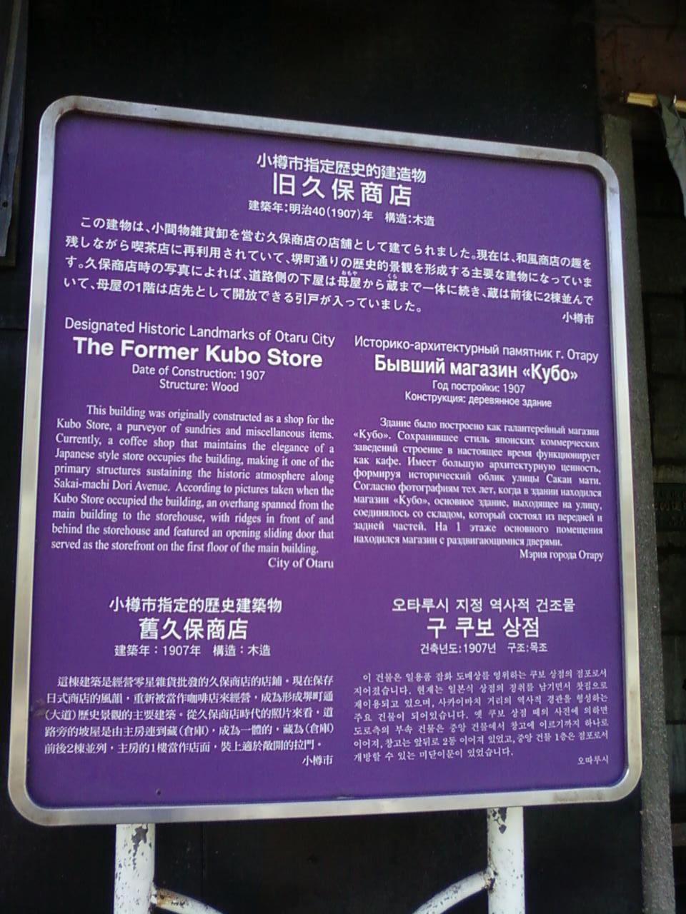くぼ家は、小樽の堺町通り沿いにある、甘味処と小樽ガラスの小物てす。1907年に建てられた旧久保商店を改装していて、とても趣のあるお店です。小樽ガラスで飾られた甘味処の雰囲気もいかにも小樽のカフェと言う感じで素敵です。衣料品などもあったので、インナーのシャツを買ってみました。