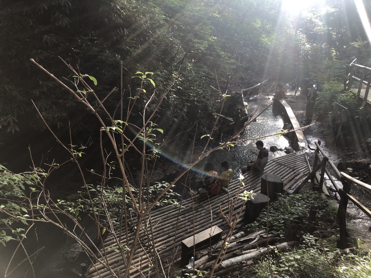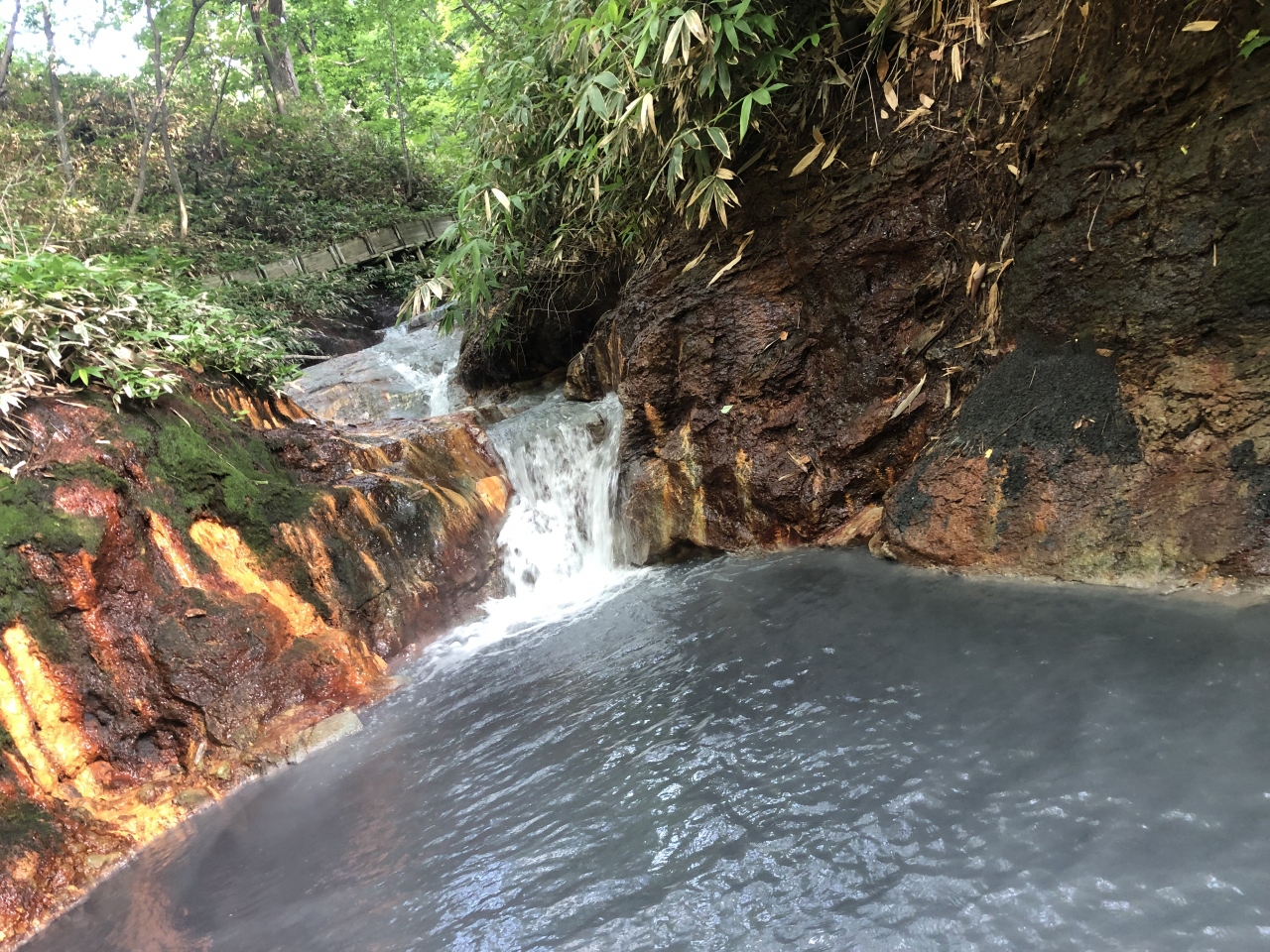登別の地獄沼→奥の湯→大湯沼へ散策し、その先にあります。大湯沼から流れ出たお湯が、ほどよいお湯加減になっていて、とても気持ちがいいです。散策してちょうど歩き疲れたところにこの足湯があり、休憩にぴったりです。