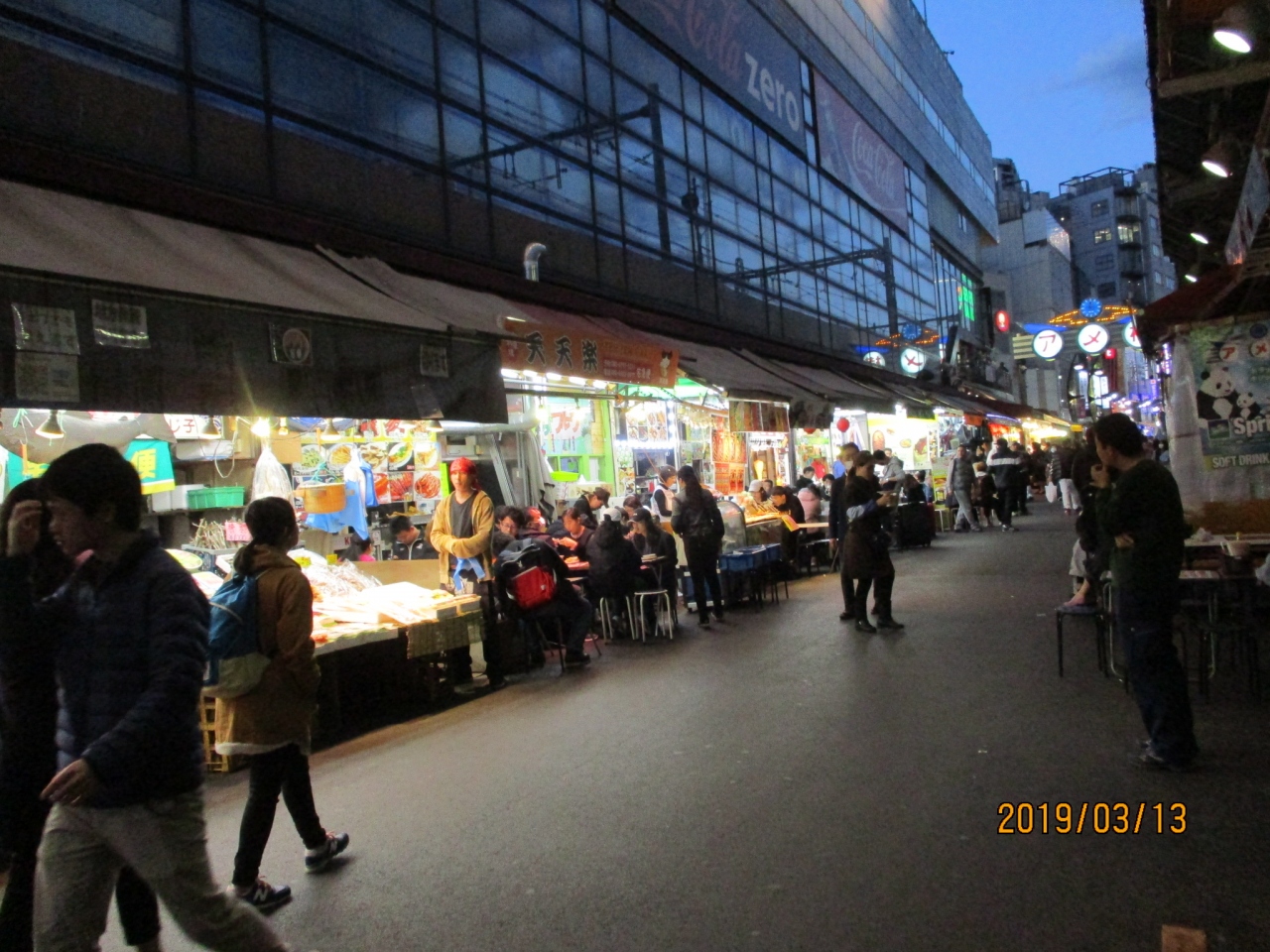 JR山手線のガードにそって並ぶ通りで、上野駅から御徒町駅あたりまで生鮮食料品や日用品などを売る店が並んでいます。その店の大半は、昔ながらの八百屋、魚屋などの店です。よく、年末のアメ横通りの混雑した様子がテレビなどで紹介されていますが、私が訪れたときは、わりとひっそりとした感じでした。