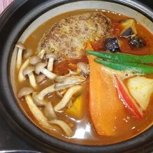 ハンバーグのスープカレーを頂きましたが、ハンバーグの旨味とスパイスの効いたカレーが合っていて美味しかったです。