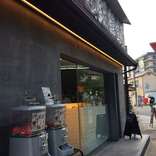 哲学の道を進みながら散策していたときにたまたま入りました。今年オープンしたばかりだそう。大きな窓からは美味しそうなパンやスイーツがかっこよく陳列されていて、パン屋さんかなと思ったら、店内は雑貨の陳列棚もありました。子どもは外にあったガチャガチャに興味津々でした。