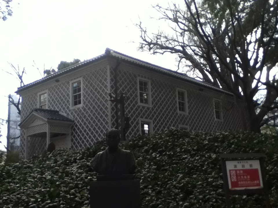 慶応義塾三田演説館は正門から入って左側にある。お勧めの点は、日本に演説の手法を持ちこんだのは福澤諭吉と三田演説会の人々であること、三田演説館は福澤諭吉自らの資金によって日本最初の演説会堂として建てられたものであること、建物は洋風でありながら外観は木造瓦葺、なまこ壁といった日本独特の手法が用いられている擬洋風建築であること、演説館の前に福澤諭吉の銅像があることである。訪問時の感想は、建物は大きくないが明治初期の和洋折衷様式のデザインで素敵でありじっくり見るとともに、日本最初の演説会堂において福澤諭吉が演説する姿を楽しく想像でき訪問して良かった。