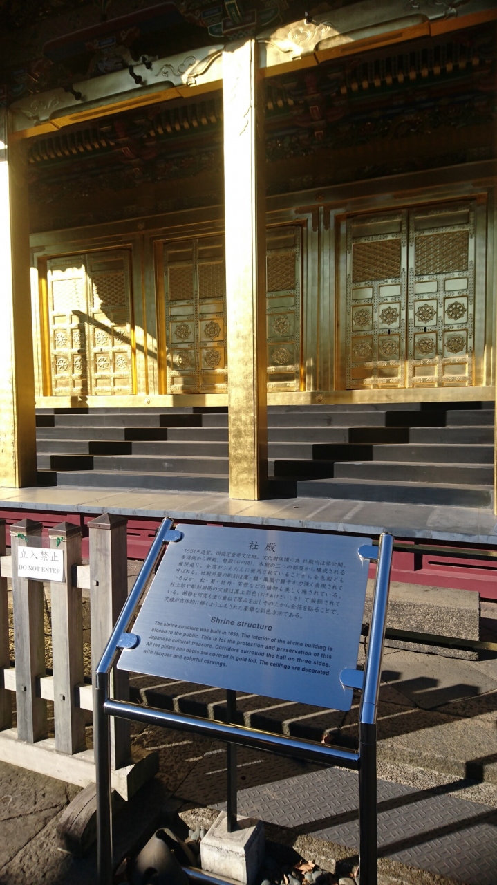 1651年に造営されて400年の間、様々な災害をくぐり抜けてきた上野東照宮の社殿を初めて拝観しました。社殿の中は非公開ですが、見事な彫刻で彩られた社殿の外壁はつぶさに見学することができました。金色殿とも呼ばれるようにとてもきらびやかな社殿でした。拝観料500円を払う価値は十分にあります。