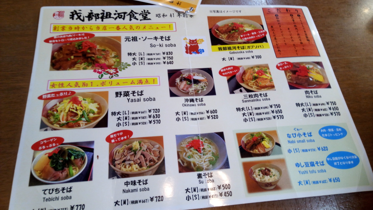 元祖のソーキそばから野菜そばなど、いろいろなそばがありました。