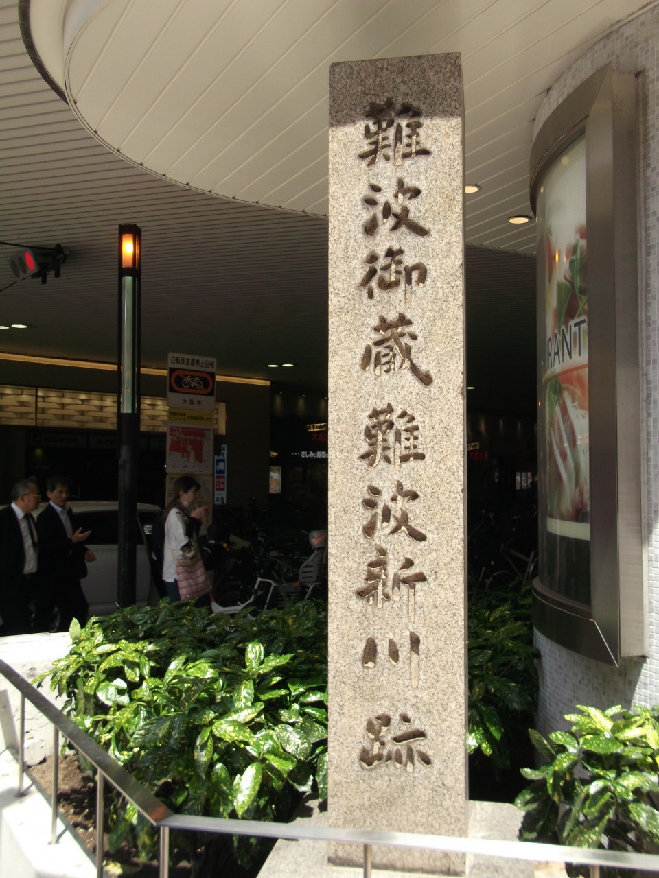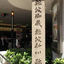 南海電鉄なんば駅前の、なんばパークス入口横にこの石碑がひっそりと建っていました。江戸時代にここにあった幕府の米蔵が難波御蔵で、そこに米を運ぶために掘られた水路が難波新川です。その後御蔵は廃止になり川も埋め立てられ、今はこの石碑が過去の歴史を示すだけになっています。今は多くの人が行き交う場所なので想像もできませんね。