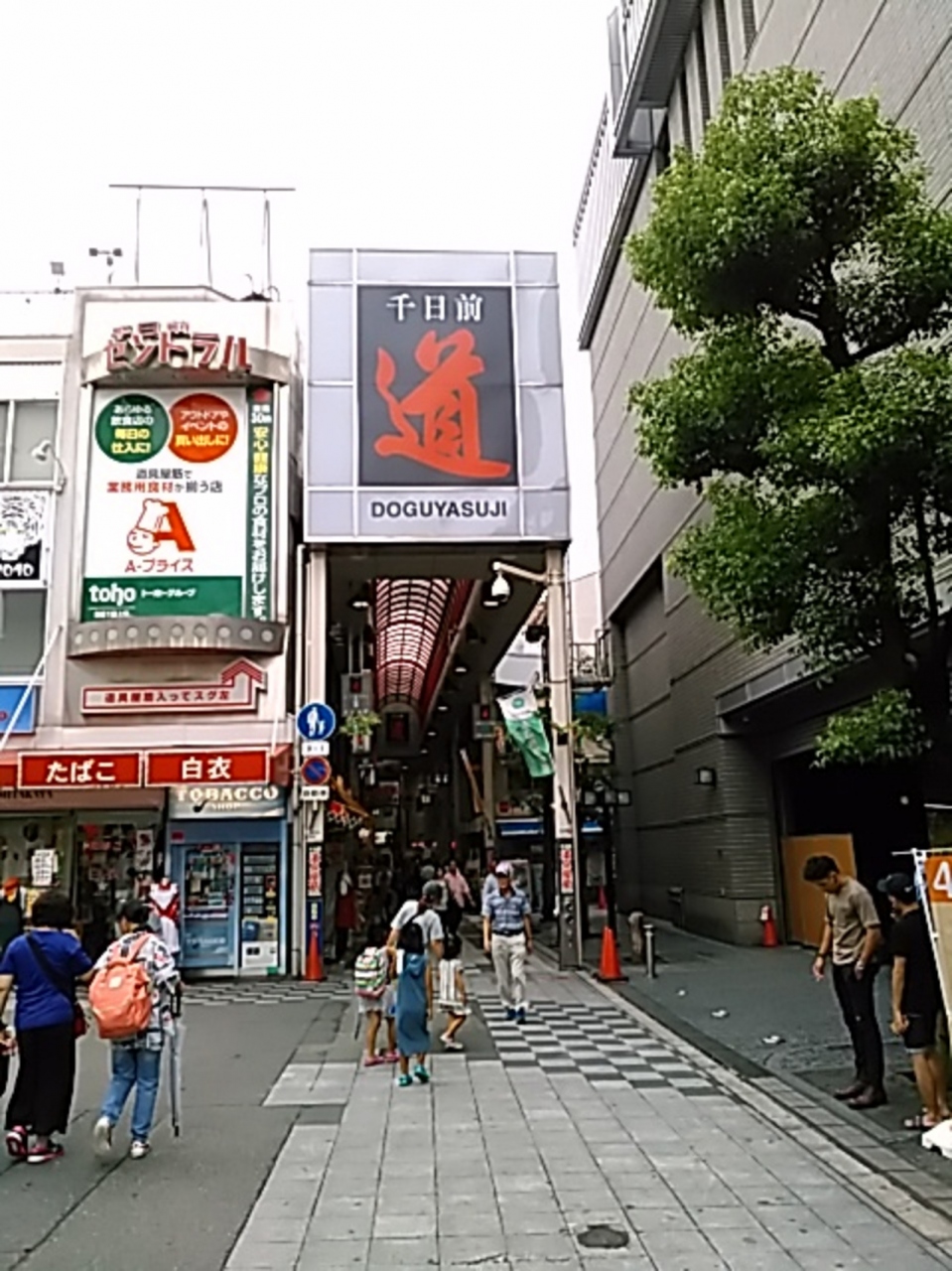 南海なんば駅の東側で、徒歩2分位の所にあります。他の駅からでも、なんばグランド花月を目指せば商店街に着きます。商店街の全長は150メートル位です。名前からして、道具の専門店が多いのがわかりますが、厨房機器、食器陶器、包丁等のお店がいっぱいあります。プロが浮き浮きするような場所だと思います。