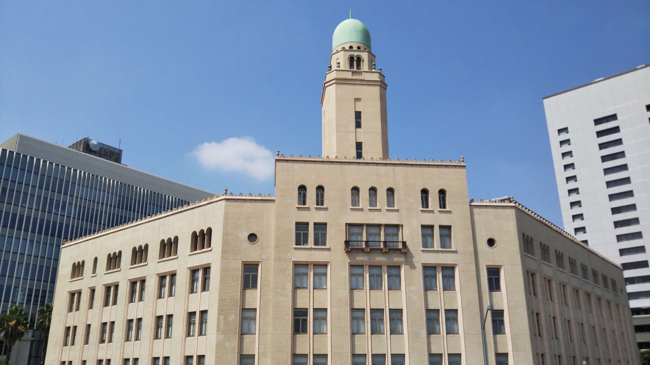 山下臨港線プロムナードを散策していると象の鼻パークのあたりで正面に見えてくる建物です。
