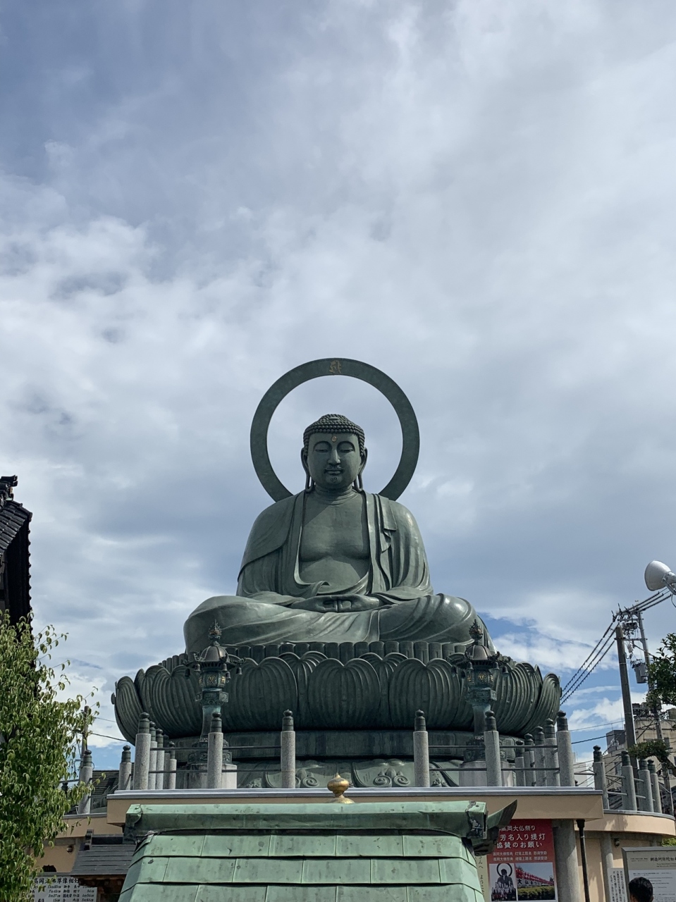 高岡駅からトラムに乗って10分ほど。駅から少し歩くとすぐに見えてきた。3大大仏でとても綺麗なお顔の大仏だった。