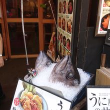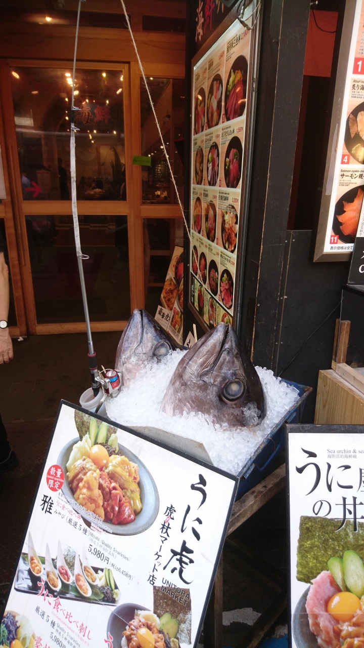 今回は、3日間、築地に滞在するので、思いっきり海産物を堪能しようと思います。その第一弾がウニ。偶然、通りかかったらマグロの頭があったので引き寄せられたのですが、マグロのお店ではなくウニのお店だったので入ってみました。マグロの中落ち丼と表面を炙ったウニのセットをいただきました。マグロも食べたかったので、一度に味わえたのが良かったです。もちろんウニも美味しかったです。