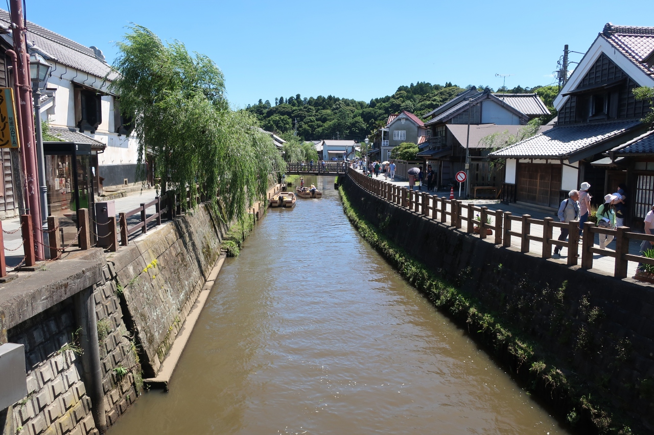 佐原の市街地を流れる小野川沿いには情緒のある街並みが続きます。利根川水運の要所となった佐原はこの小野川沿いに栄えたこともあり、小野川沿いには江戸時代、明治時代の商家、町屋が残っており、人気の観光コース。昨今ではテレビCMの撮影にもよく使われているのを見かける程です。小野川を行き来する舟、川に掛かる柳、どれをとっても絵になる街並みです。