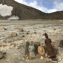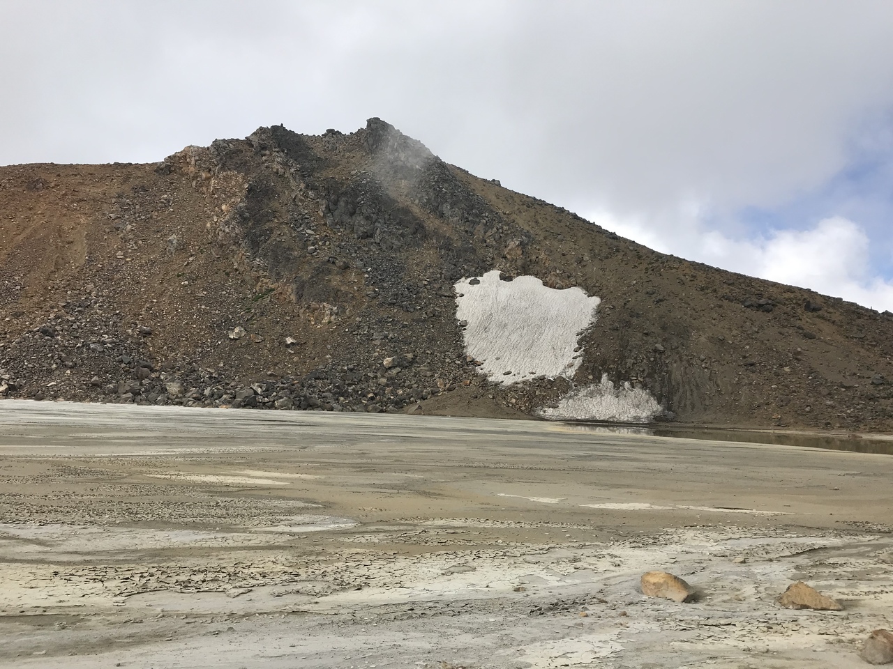 湖の水はほとんど干上がっていたが、山頂の外輪の斜面に少し残っていた。静かな水面を見ていると火口だと忘れる。