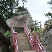 盛岡城跡地から見えるので行けるのかと思いきや、一度外へ出て、神社からしか行くことはできません。とても巨大な岩で圧倒されます。さわると健康になるそうです。桜山神社参拝をするならついでにみておきましょう。