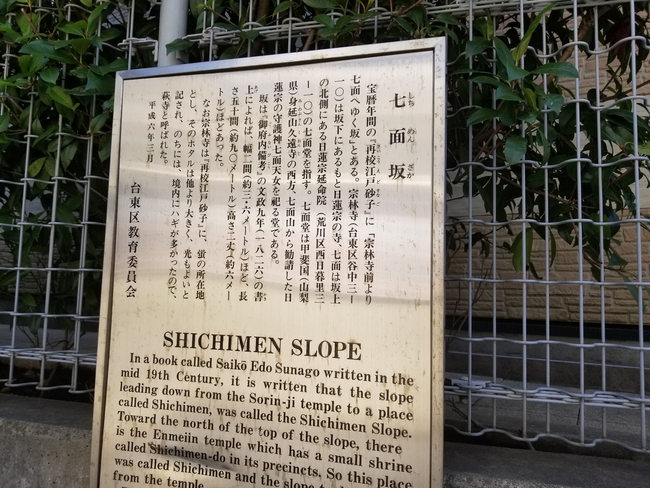 近くのお寺に七面堂があることから名付けられたとの事だが、普通の坂だ。