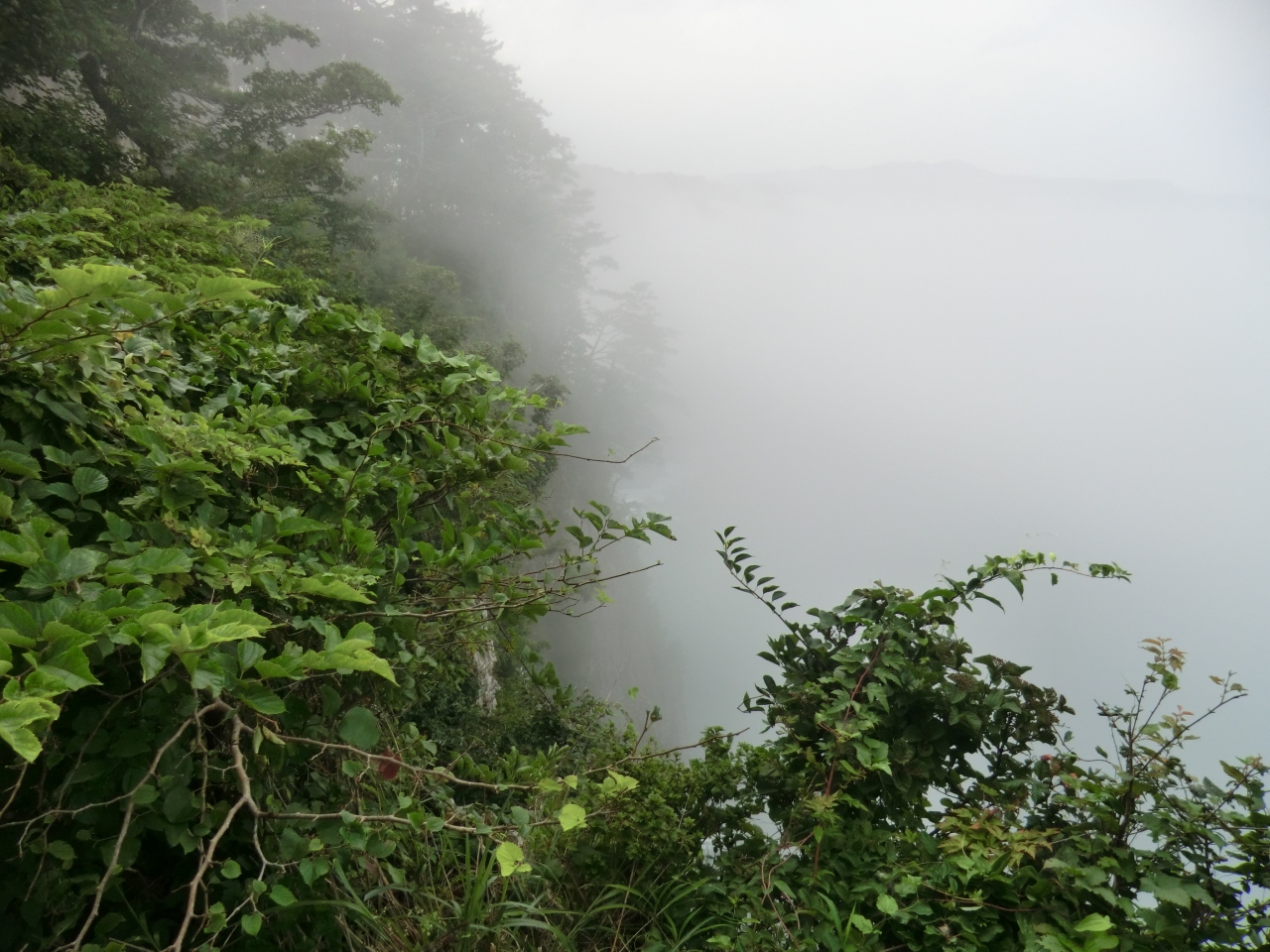 「赤い壁」の異名をとる名勝地です。海沿いの崖の展望台、北側と南側のすばらしい海の崖を見ることができるはずでしたが、霧に包まれ、何も見えなくなってしまいました。アクセスが難点で、国道から道をはずれ、ようやく駐車場に到着しましたが、そこから森林の中を10分くらい歩いて、ようやく展望台に到着します。ここはよい散策路なのですが…ね。