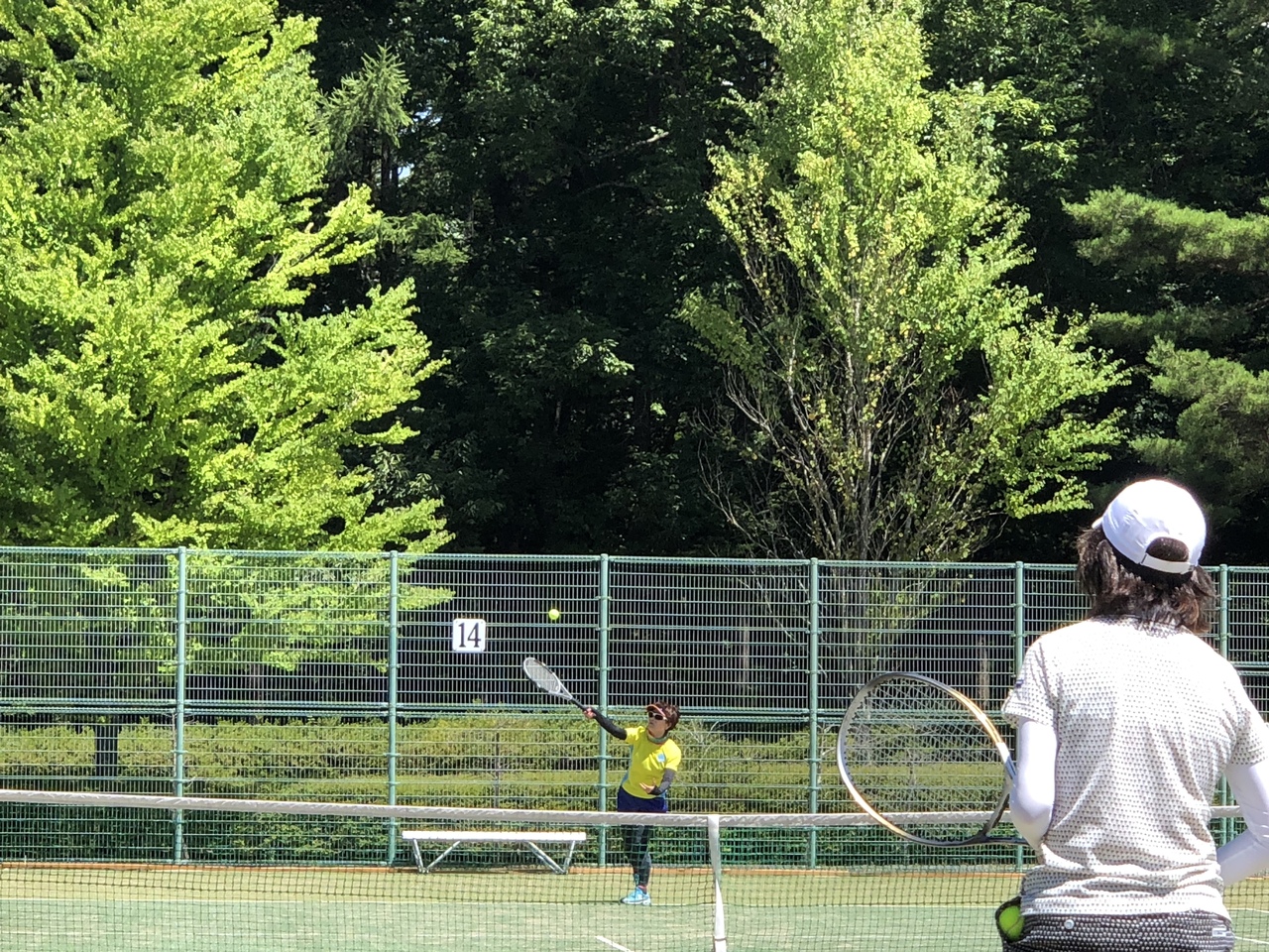 屋外コートが14面ありテニスコートは時間貸し、団体貸しなどあり、夏場は学生の合宿などで利用で混んでいる時もあります。