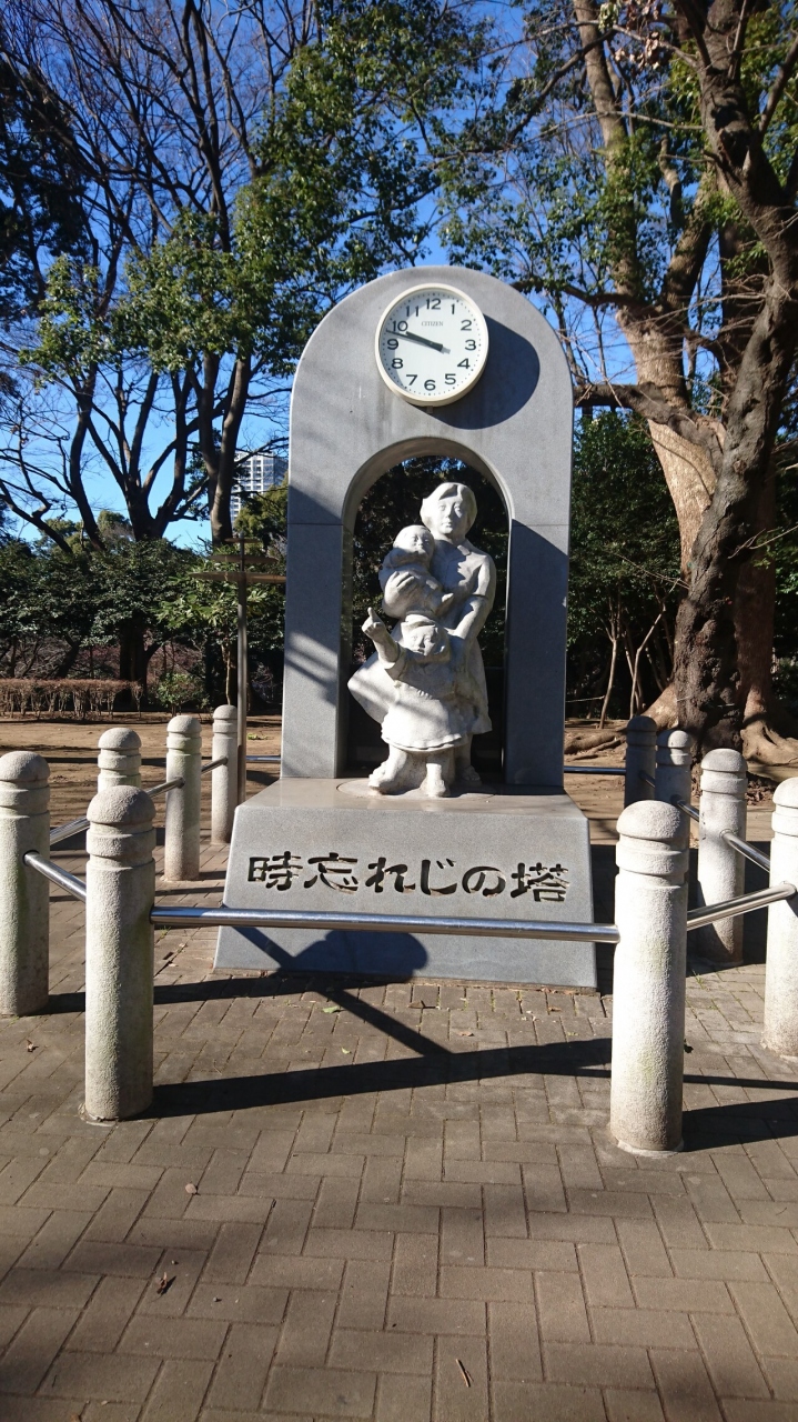 上野公園に南側から入り、歩道を歩いて清水観音堂を越えたあたりに、時計と母子のオブジェによる慰霊碑がありました。これは東京大空襲の犠牲者を悼む慰霊碑で平成17年に建てられたものだそうです。とても目立つ場所にあるので、道を行く人々が目をとめてみていました。