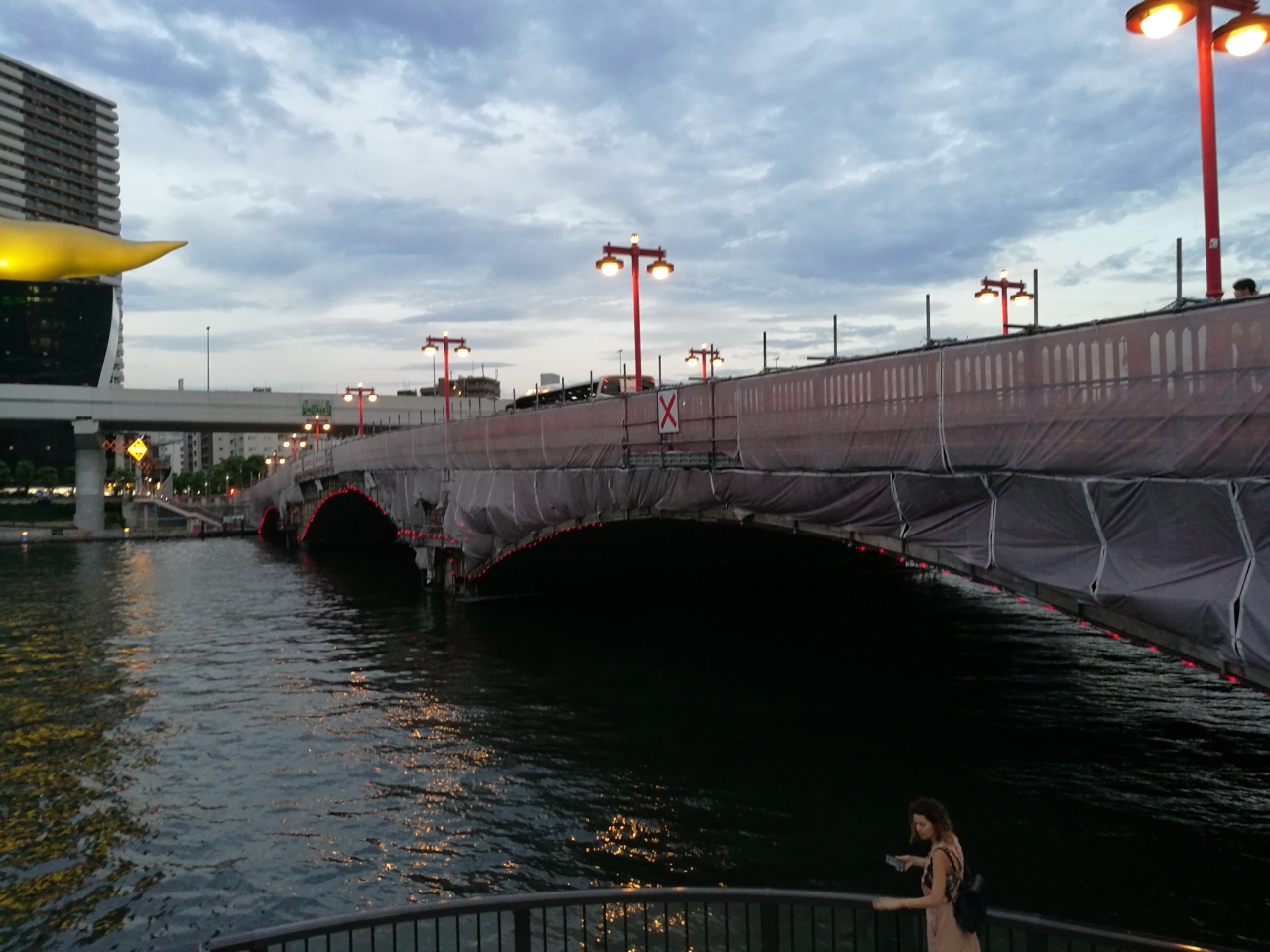 浅草から黄金のオブジェのあるアサヒビールのビルへ隅田川を渡る橋が吾妻橋ですが、現在の橋は関東大震災で壊れてしまった橋を昭和4年から工事を初めて2年越しの昭和6年に完成した、鉄筋コンクリート製のもの。