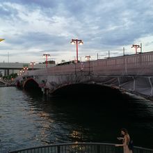 浅草から隅田川を挟んで対岸のアサヒビールのビルに渡る吾妻橋戦前に架け替えられた鉄筋コンクリート造のもの