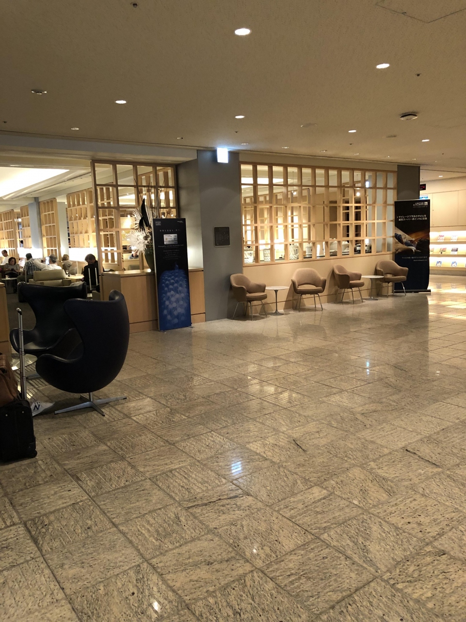 ANAラウンジはブルー基調で素敵だがこちらの雰囲気もいい。