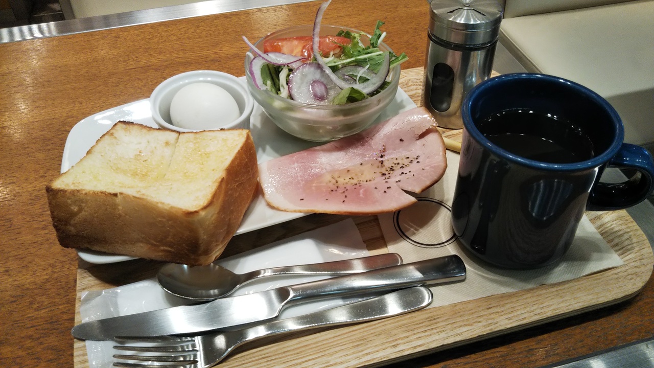 朝食を食べようと初めて利用しました。午前八時半でしたが、席はかなり埋まっていました。ハム、サラダ、ゆで卵、ハム、トース