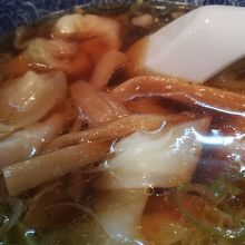 看板のラーメンが美味しそうで激安価格です。チャーシュー麺、雲呑スープ、特製焼売を頼んでみました。普通盛りラーメンは女性には丁度良いかな。