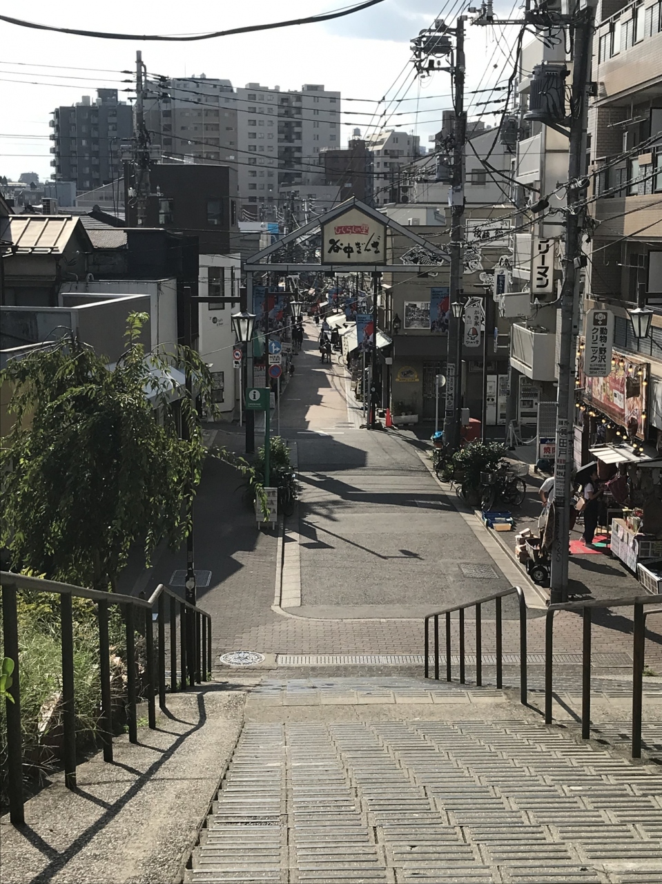 階段上から谷中ぎんざが見渡せます。