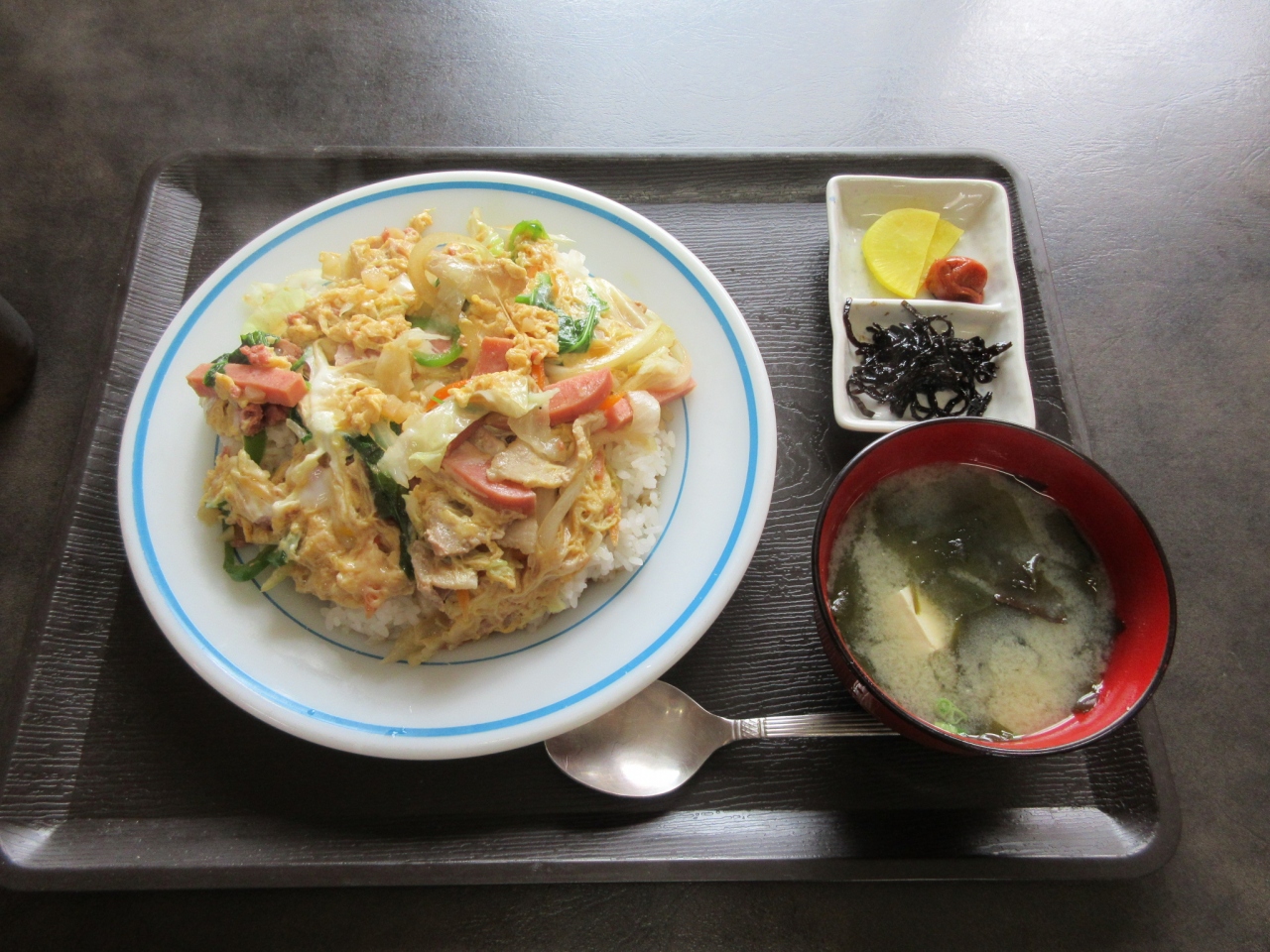 粟国島の食堂数は限られているので,貴重な選択肢の一つになります.ランチで利用しましたが,地元のお客や,沖縄本島から来られた工事関係の人達でほぼ満席でした.昼のランチメニュー数はそれ程多くはなく,比較的イメージしやすいメニューだったので,敢えて「ちゃんぽん」というチョット沖縄を想像し難いメニューを注文してみました.炒飯と同じ650円で,麺ではなく「ご飯」でした.何となく玉子丼のような感じでした.生ビールが400円で,両方あわせてもほぼ1000円と,リーゾナブルでした.