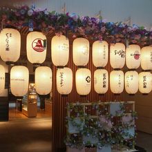 提灯にお店の名前が書かれていたり、と、装飾が日本風です。