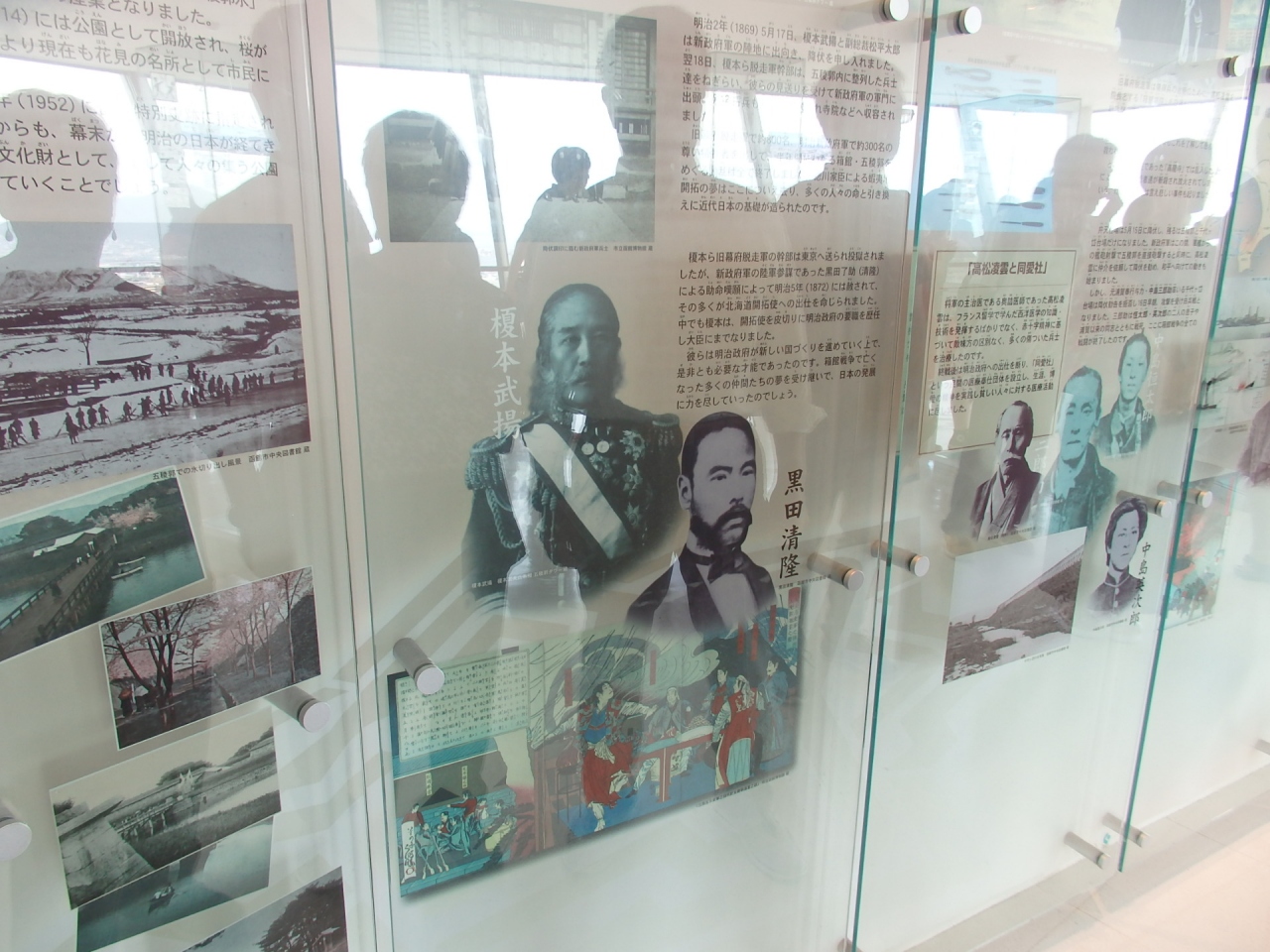五稜郭公園に建つ高さ100Mほどの展望塔です。展望一階には土産物店、カフェ等、展望台二階には展示物、展望デッキ、土方歳三銅像等があります。入館料は900円と少し高いのですが、稜堡と呼ばれる星型城郭を見たかったので登りました。函館戦争に関する説明が展示されていました。星型城郭を初めて見て、城ファンとしては感激です。