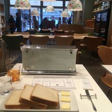 有楽町駅から徒歩ですぐです。食パン購入と店内飲食の別に列に並びます。今回は店内で食パンの3種類の食べ比べにしました。好みのトースターを選び自分で焼いて食べます。ジャムも数種類あります。やはり美味しいです。値段は高いですが美味しいので納得です。インテリアもオシャレです。