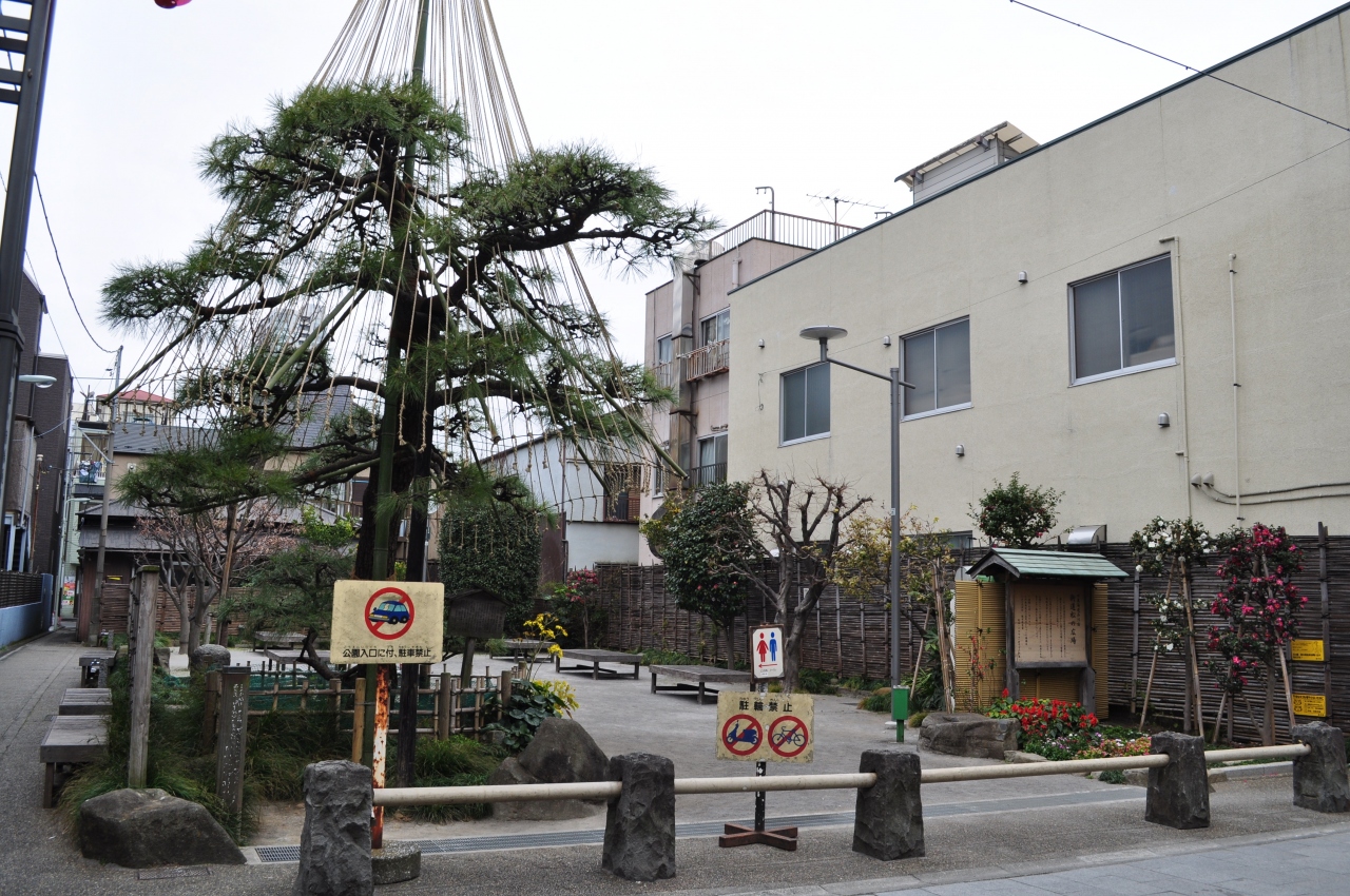 京浜急行新馬場駅から徒歩7分ほど、品川橋から少し南に下った旧東海道沿いにある広場になります。広場といっても遊べるほどの敷地面積はありませんが、松の木とベンチが数台おかれており、市民の憩いの場として活用されているようです。かつて品川は東海道五十三次の第1の宿場町であり、品川宿として栄えた街になります。当時の東海道の宿場町から贈られた松のうち、浜松宿から贈られた松の木がこちらになるそうです。かつてはこういった松の木が東海道沿いに植えられていたのかと思うと実際に歩いてみたくなりますね。