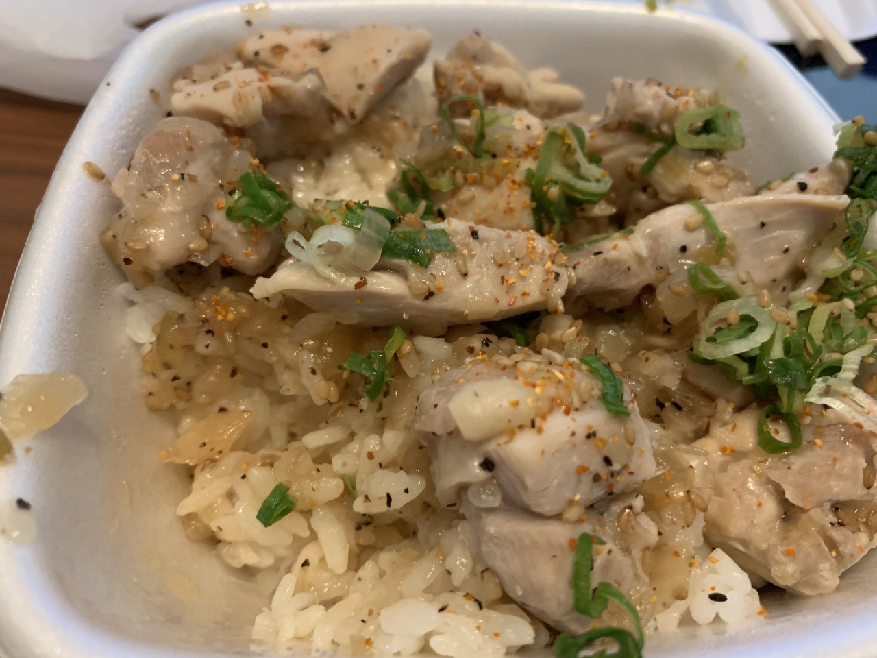 鶏塩丼にしましたが、塩だれだと脂が多い方が美味しいので豚にすればよかったなーと思った。
