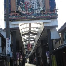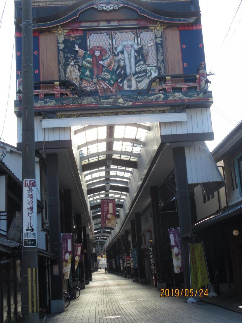 長浜で有名な曳山祭りをモチーフにした飾りの人形が、商店街の看板になっています。