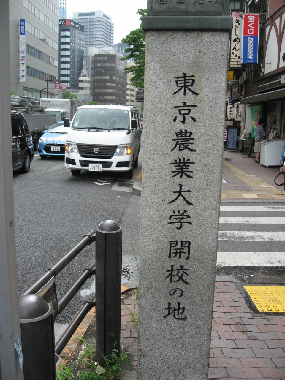 モロッコ料理を食べに地下鉄飯田橋A4出口を上がると、目の前に「東京農業大学開校の地」の石碑がありました。