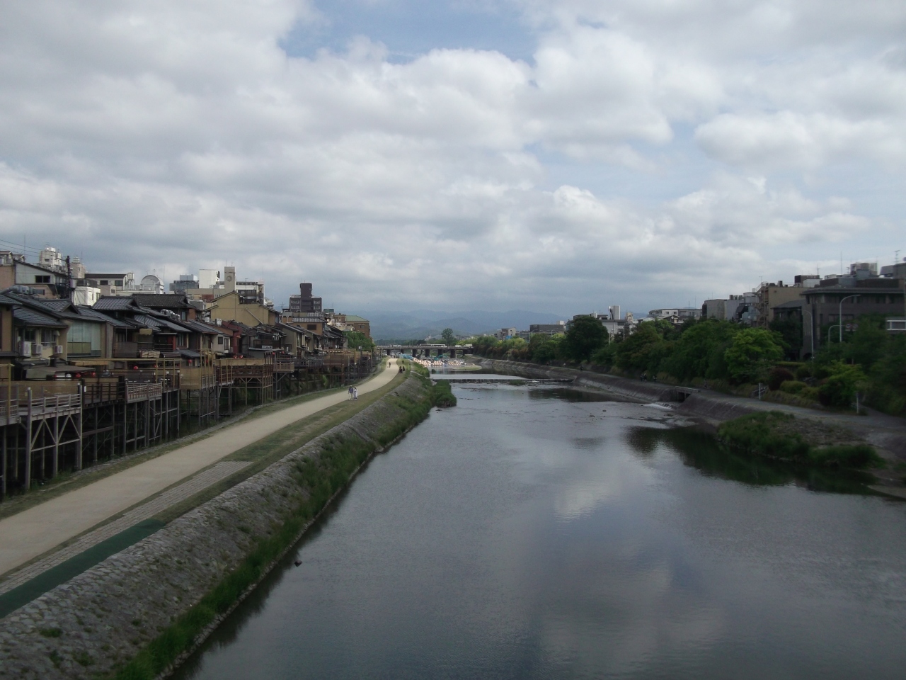 京都の街中を南北に流れる鴨川。普段は穏やかな流れなので、自然の風に当たりながらのんびりと散策をするのには絶好の場所です。川沿いは遊歩道のようになっているので、ジョギングや散歩をする人が行き交います。川沿いに並ぶ川床の景観も京都らしさを感じるところです。
