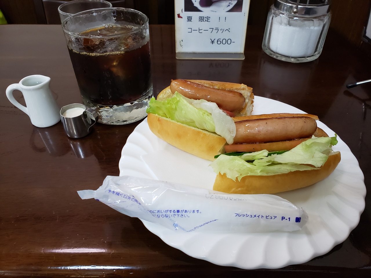 神戸元町の駅からすぐのところにある老舗の喫茶店。ホットドッグやサンドイッチ、ピザトーストとコーヒーをセットにした軽食メニューもありますし、ケーキやパフェもあります。コーヒーはホットもアイスも、酸味のきいた本格珈琲を味わえます。