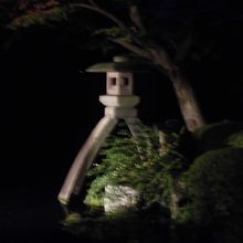 兼六園内にある灯籠です。朝一の入場を狙って朝5時に入場した状況で暗い中無事に見つけることができました。やはり有名な設置物らしく明かりがついていたので見つけるのが容易でした。琴柱の形をしているのが名前の由来だそうです。