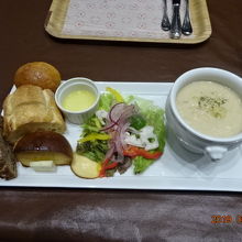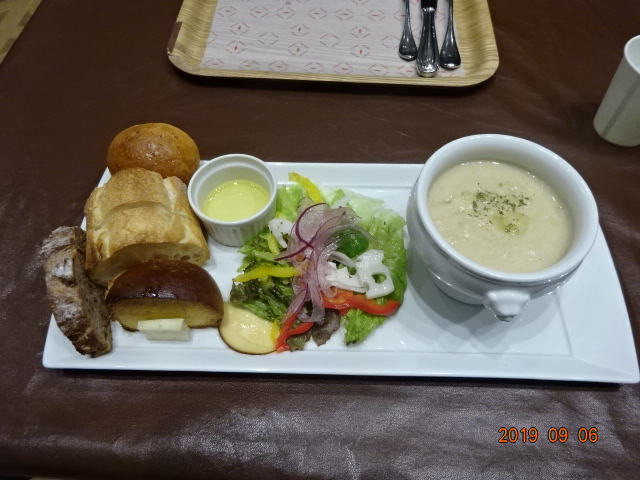 勤務先のビルの地下にあり、パンとスープ、サラダのワンプレートランチが美味しそうだったので行ってみました。スープの選択肢は2種類で、じゃがいものポタージュかミネストローネ、パンは4種類、それに少量のサラダが一緒に盛られています。パンは1回のみお代わり可能で、2種類が追加で供されます。パンを温めているのか出てくるまでに結構時間が掛かりました。スープは少し味が濃い。サラダは普通、可もなく不可もなくという感じ。そしてブランジェリー(パン屋)なので、一番肝心なパンは美味しいのだろうと思っていましたが、前の日の残りでも温めて、誤魔化して出しているのではと思う程、水分が抜けて、パサついたパンでした。種類も安っぽい物ばかりで、これなら割高でも好きなの選んで食べた方が美味しかったのかなとも思いましたが、本当に美味しいパンならベーシックなほどよく分かるし、昨今流行りの高級食パンの良いお品は日にちが経っても美味しいので、この程度のレベルならどちらにしろ大したことはないと思います。結構高額なパンも並んでいましたが、リピートはないですね。サービスだけはわるくありませんでしけど。