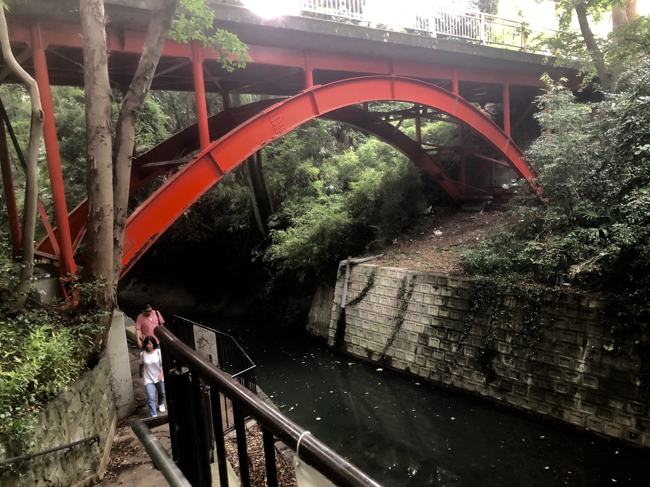 まず階段を降りるとゴルフ橋(昭和初期に付近にゴルフ場があったのが由来)