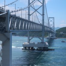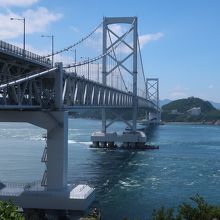 大鳴門橋を兵庫県南あわじ市側から見るなら道の駅 うずしおがお薦めです。鳴門岬の先端に位置する道の駅には大鳴門橋を望む展望台があり、歩いて行けるよな距離にあるため鳴門海峡に建つ橋脚から、ケーブルまで手に取る様に見ることができます。